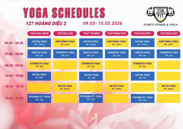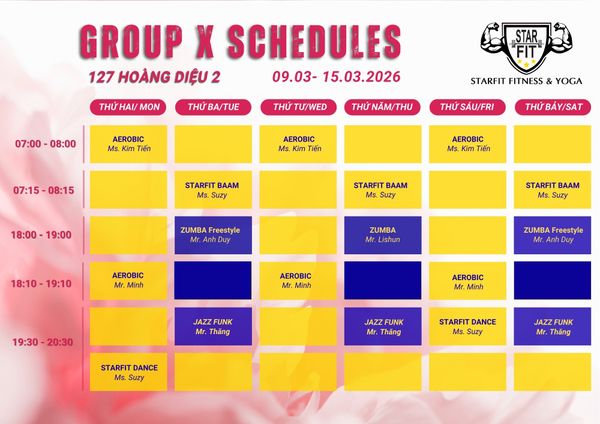 [CẬP NHẬT ] LỊCH HỌC YOGA VÀ GROUP X TẠI STARFIT FITNESS & YOGA